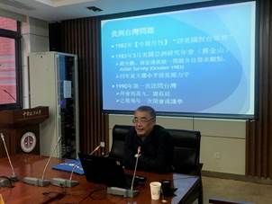 讲座中,赵全胜教授首先结合自身关于台湾问题的研究经历回顾了台湾问题的历史渊源和发展过程,指出台湾问题是国际关系研究中不可回避的话题,对国际局势有重要影响。接着围绕台湾问题就台湾岛内的社会现实、两岸关系的未来和国际因素三个方面展开了讲述。赵教授认为,目前台湾岛内政局动荡、经济停滞,人心思变,年轻的一代相对务实,并没有太多政治和意识形态的考量;两岸关系,和平统一是目标,武力统一是威慑手段,关键是民心。近年来,大陆方面以经济文化的融合来促进和平统一的政策整体上是有效的,未来要进一步坚持“经济好处要多给年轻人”,推进两岸交流民间渠道的建设发展。同时赵教授提到,美国和日本仍是台湾问题的重要影响因素。