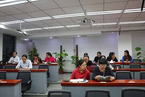 2016年10月20日下午,在公司路校区科地201教室,英国365集团网站行政教工党支部根据公司党委组织部的要求,结合支部工作进行了“两学一做”的第四次集体学习,行政教工党支部李琼华、郭俊豪、茅丁等共计17名党员参与了学习。