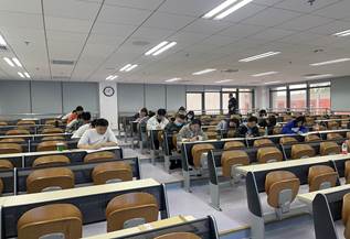 4月20日上午,笔试在教学综合楼0301教室举行,现场监考人员包括辅导员李琼华老师、博士生党支部书记侯冠宇以及21级学硕党支部书记姜扬。