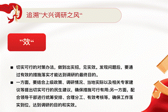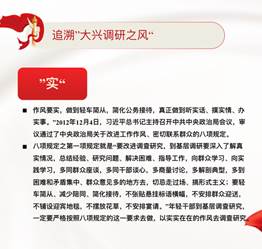 而“大兴调研之风”可以追溯到2003年2月25日,时任浙江省委书记的习近平总书记在《浙江日报》“之江新语”专栏发表了一篇题为《调研工作务求“深、实、细、准、效”》的短文,文章提出在调研工作中,“一定要保持求真务实的作风,努力在求深、求实、求细、求准、求效上下功夫。”这篇文章虽然篇幅短小,但内容深邃,把调查研究应该注意到的问题都说深说透了。年轻干部应该践行习近平总书记提出的“求深、求实、求细、求准、求效”这“五点”要求,通过践行这“五点”要求,来提高调查研究的水平,增强调查研究能力。随后徐传湘同志分别展开讲解了这五点要求。