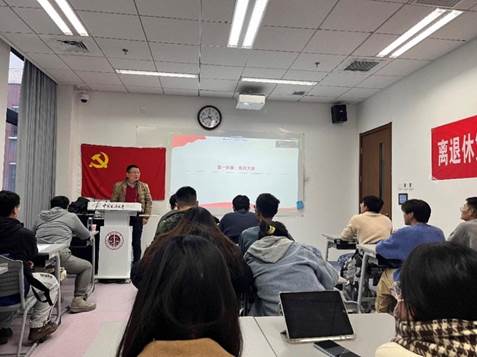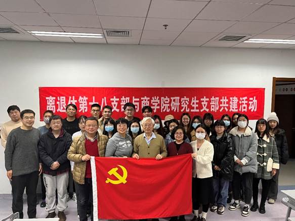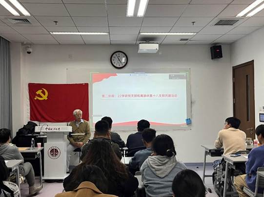 会议第二阶段,22级学硕党支部与离退休第18党支部开展支部共建活动。两名老党员同志依次讲话,给新入党的同学给予勉励。