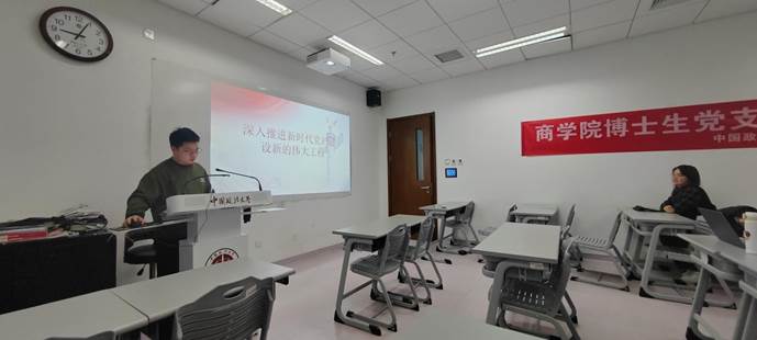支部书记王乾坤主持了学习会,并介绍了本次党支部理论学习活动的内容。本次主讲团队由2023级博士生郭梦竹、彭相才、宛洁茹和2023级杨思敏四位党员组成。