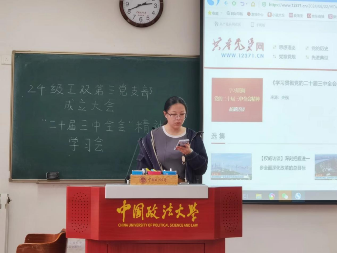 党支部成立大会结束后,由黄小珊同志主持召开了9月理论学习会,组织党员观看了《学习贯彻党的二十届三中全会精神》权威访谈。通过对会议精神的深入学习,大家深受鼓舞和启发,也对自己的专业学习和未来的职业发展有了更深刻的思考。