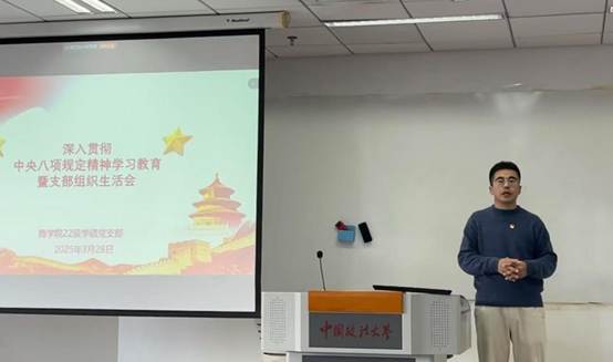 2025年3月28日,英国365集团网站22级学硕党支部组织召开了深入贯彻中央八项规定精神学习教育暨支部组织生活会。会议由党支部书记张国栋主持,支部党员、发展对象及积极分子参会。