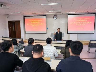 随后,党支部书记彭婉颖带领全体党员回顾了中央八项规定的出台背景,逐条研读了《改进工作作风、密切联系群众的八项规定》原文,并结合近年来违反中央八项规定的典型案例对改进调查研究、精简会议活动等具体内容进行了细致讲解。紧接着,全体党员依次分享了学习心得,并结合学习、生活实际就如何改进自身作风、提升服务同学能力等方面进行了深入交流研讨。党员们纷纷表示,会后将充分利用课余时间,持续通过学习强国平台及观看警示教育片等方式进一步学习领会中央八项规定及其实施细则精神的内涵,以反面典型为鉴,推动学习教育入心入脑。