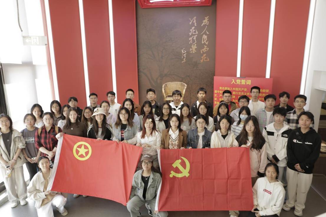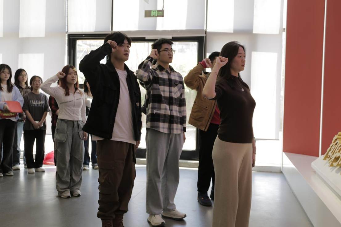 参观体验结束后,支部书记王晓曦同志带领全体党员与预备党员面向党旗庄严宣誓,重温入党时的决心与信念。“随时准备为党和人民牺牲一切”的誓言与焦裕禄“生也沙丘,死也沙丘”的遗志交织,激发了同学们的情感共鸣。宣誓后,王晓曦老师也结合中央八项规定最新部署,强调“要将‘不搞特殊化’的焦裕禄准则,转化为拒绝‘一份抄袭、一张假发票、一次违规加分’的日常坚守”,员工党员应“培养艰苦奋斗精神,不追求高消费,提高自控能力”,将清廉理念融入学术研究和为同学服务的全过程。