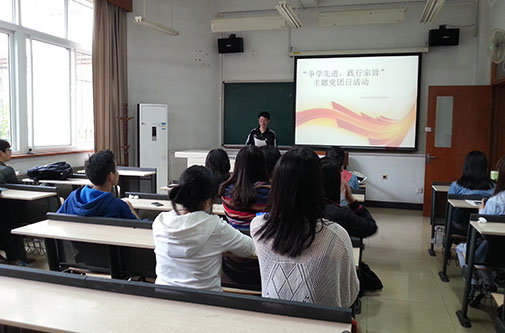 有的班级同学他讲述的是优秀党员的事迹。如经济学一班便选择了丛飞。杨超同学以慷慨激昂的演讲道出丛飞伟大的一生。“及成名,义演十余年,助学百八童,善资三百万。至罹胃癌,然扶贫之心未减。嗟夫,其历千难而志不衰,遭二竖而气不竭者,何哉?是胸怀广大、心地慈悲故也。”又如黄睿之同学讲述的数学家华罗庚的事迹。“壮年归国,志荐轩辕,声华藉甚,震耀中外。发明优选、统筹二法,誉称中国现代数学之父。赞曰:创中国学派,未辞艰巨;竭赤子忠诚,独有崇高。卓尔出群,允为一代完人也。演讲的同学慷慨激昂,深深地感染了大家。”