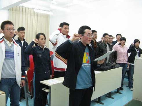 2008年04月08日公司本科生2006.2007级联合支部在教学楼端310召开了党支部大会,为支部第一批发展的06级11名党员举行了入党宣誓仪式。