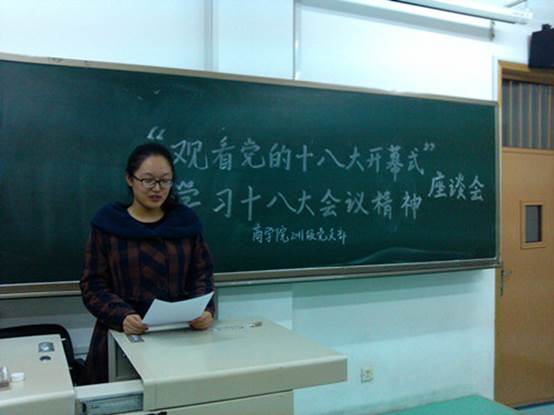 2012年11月8日上午9点,中国共产党第十八次全国代表大会在北京隆重开幕。公司本科生2011级党支部所有党员、预备党员在端升楼407教室集体收看了开幕式,并围绕胡锦涛同志代表中国共产党十七届中央委员会所作的报告进行了集中学习。