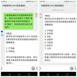 公司党委下放《关于在疫情防控中进一步发挥各级党组织和党员作用的通知》的工作方案后,18级工双4+1党支部支委会将该工作方案传达给支部党员。党员们积极相应,支部7位党员全部在线签署了《英国365集团网站员工党员防疫期间承诺书》,承诺配合防疫工作,承担党员责任。