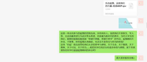 17级有的班级则一起观看了《在武汉》的纪录片,该片简述了在非常时期下武汉各类人群的生活和故事,带给观众温暖并积极向上的人生故事,而同学们也有诸多感悟。还有班级采用了PPT图片+视频+微信群讨论多种形式结合的方式开展了此次班会,引导同学们在疫情期间,珍爱生命,增强社会责任感,努力成长成才。