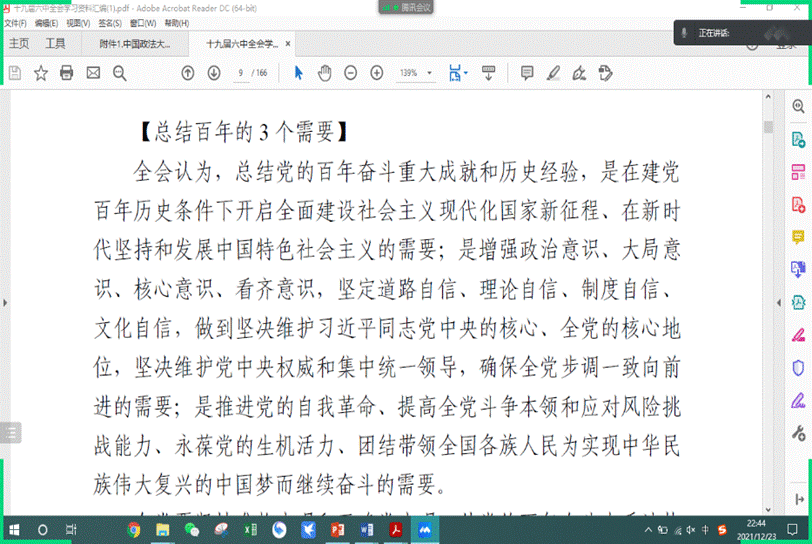 为深入学习十九届六中全会精神,英国365集团网站2020级学硕班于2021年12月23日晚上在线组织了十九届六中全会专题学习会,英国365集团网站2020级学硕班全体同学参加了本次专题学习会,班长李芃主持学习会。