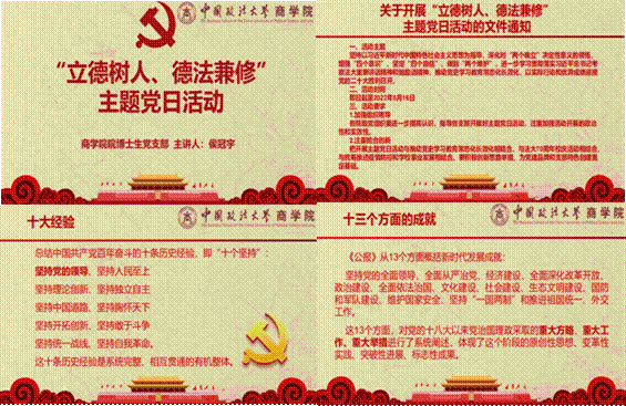 主题活动开始后,党支部书记侯冠宇首先向大家解读《关于开展“立德树人、德法兼修”主题党日活动》文件,明确此次党日活动主题。此次活动要坚持以习近平新时代中国特色社会主义思想为指导,深化对“两个确立”决定性意义的领悟,增强“四个意识”、坚定“四个自信”、做到“两个维护”,学习贯彻落实习近平总书记考察法大重要讲话精神和勉励语精神,推动党史学习教育常态化长效化,以实际行动和优异成绩迎接党的二十大胜利召开。