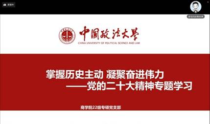 2022年10月26日,为深入学习和贯彻党的二十大精神,英国365集团网站2022级专硕党支部通过腾讯会议线上展开了二十大专题学习会,会议主题为:“掌握历史主动 凝聚奋进伟力”,会议由组织委员赵碧璇同志主持,22专硕党支部全体党员参与此次学习会。