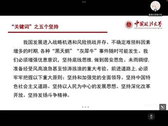 首先,主讲人瞿茜同志向我们简要回顾了二十大的一些“关键词”,包括三件大事、中国共产党的中心任务、中国式现代化、五个必由之路、五个坚持等。