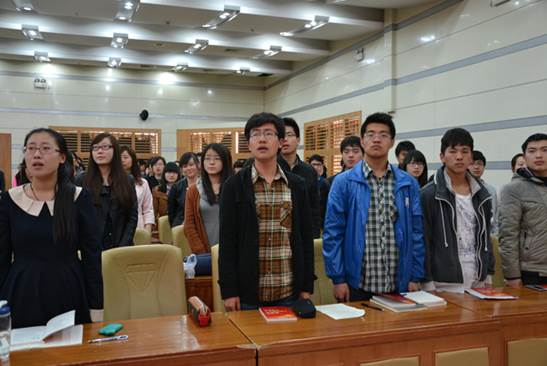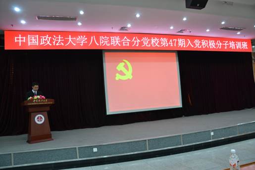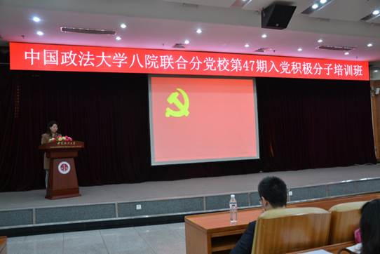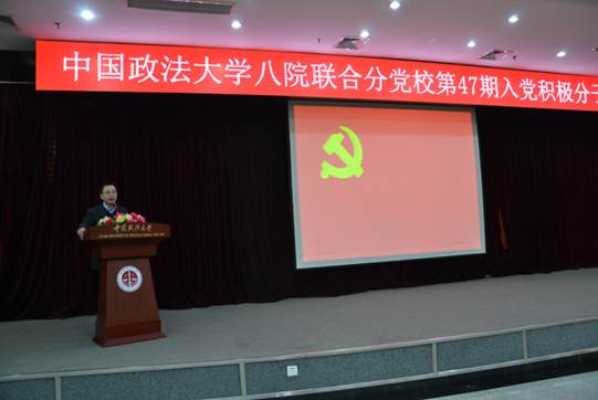 大会第三项,分党委副书记李欣宇副教授讲话。他首先指出了此次培训班的两个特点即“第47期”和“八院联合”。他说到,“47”这一数字体现了党校培训班的历史传承性,在这之前,政法大学的所有党员积极分子都曾在该课堂上接受过党组织的教育,并且在这以后也还会有更多的人参加培训,接受党的基本理论学习教育。“八院”指法大非法学专业八个公司的联合。八院联合分党校由各公司轮流承办,由起初的四院联合到六院联合,再到现在的八院联合,规模一次次扩大。他强调了八院联合的特点及优势,即可以实现更大范围的交流,也具备了更高的团队,更好地方便同学们互相交流、互相学习。