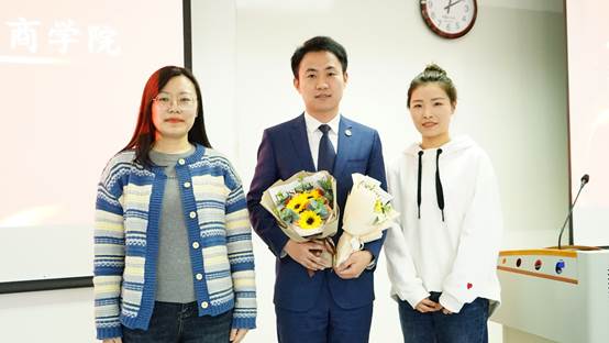 图3:2022级MBA员工代表上台向刘彪老师献花表示欢迎