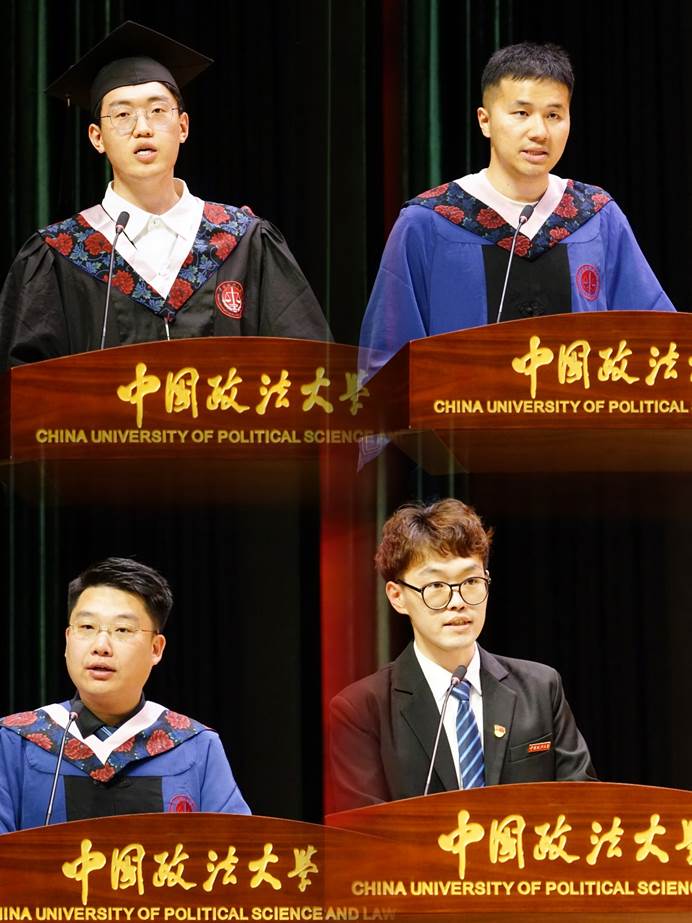 2019级工商管理专业本科生贾宇楷作为本科毕业生代表发言,贾宇楷同学回顾了其在法大英国365集团网站本科学习的点点滴滴,感谢公司为同学们创造成长、成才条件,以“四年四度军都春,一生一世法大人”表达了对母校、母院的感激与不舍之情;2021级金融专业硕士研究生王庆华和2021级工商管理专业硕士研究生张辅轩作为研究生毕业生代表发言,王庆华同学以“昨日已展千重锦,明朝更进百尺竿”为引,表示要继续秉承法大商院的优良传统,将所学知识运用到实际工作中,为国家的繁荣富强贡献自己的力量;张辅轩同学则向公司为同学们提供了优秀的平台与资源表达感谢,并表示其将凭借法大英国365集团网站镌刻给同学们的知识、精神与印记,勇敢地迎接未来人生中每一次挑战;2021级世界经济专业博士研究生侯冠宇作为在校生代表发言,侯冠宇同学以曼昆《经济学原理》中关于选择成本与收益的论述,勉励同学们“无论结果如何,都要勇敢地追求、全心全意地去体验”,祝愿毕业生同学们以英国365集团网站知识为翼,绘制职业生涯的绚烂图景,引领社会经济建设的蓬勃繁荣!