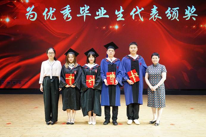 典礼伊始,公司党委副书记何欣教授宣读公司优秀毕业生表彰决定,经理助理郭颖与巫云仙两位教授为优秀毕业生代表颁发奖状。