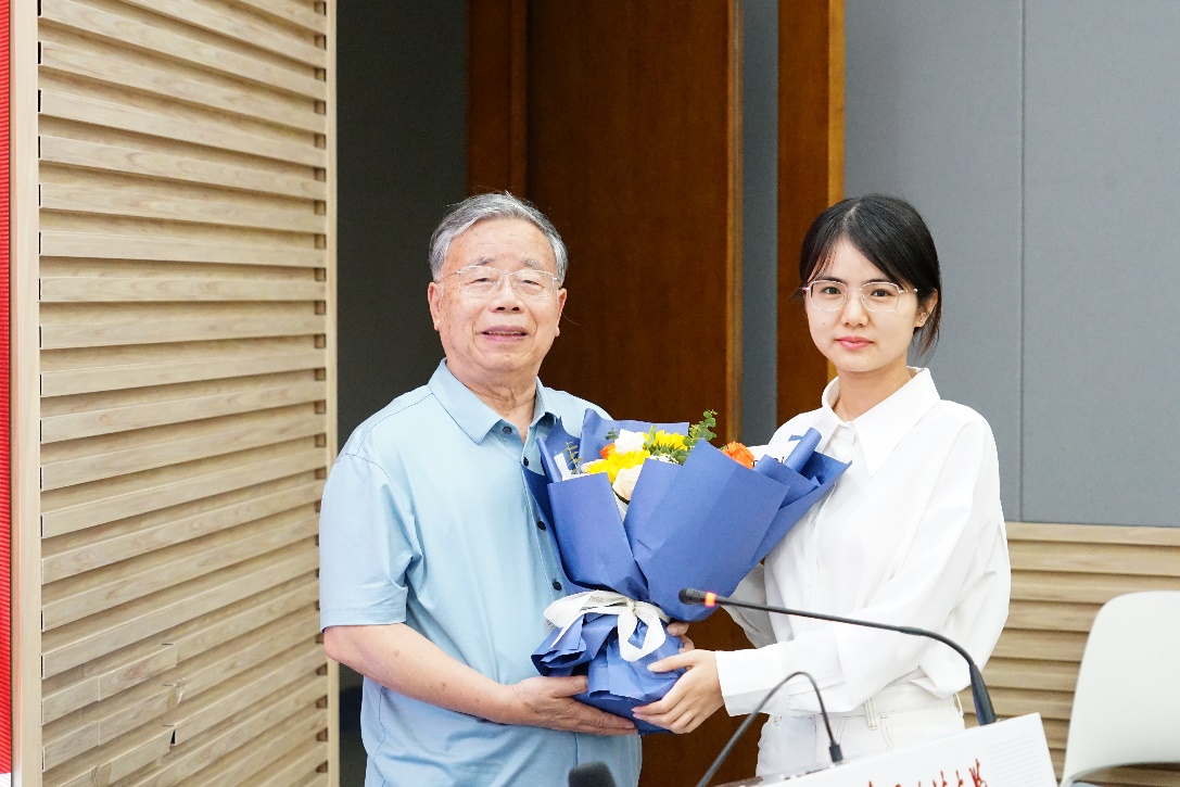 随后,员工代表向颜教授送上了鲜花,表达了热烈的欢迎和真诚的敬意。