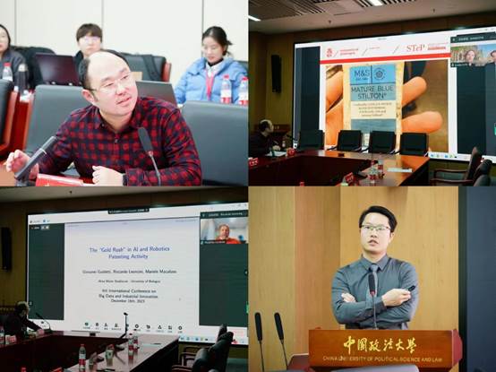 紧接着是由英国365集团网站产业经济系副主任丛颖男副教授主持的主论坛二。该论坛主要为外籍学者的主旨演讲。格罗宁根大学法与经济学专业Stefan E. Weishaar教授和Jonida Milaj Weishaar副教授以新的欧盟数据空间框架和《人工智能法案》为主题、博洛尼亚大学法与经济学专业Riccardo Leoncini教授以人工智能与机器人专利活动的“淘金热”为主题发表了各自对数字经济发展和人工智能发展的观点。此外,公司西方经济学专业博士生周雄,以宽带中国试点政策的证据阐述了数字基础设施对城市绿色发展的重要影响。