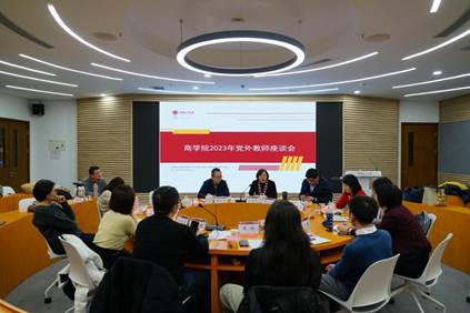 接着,与会党外教师进行了交流发言。各位老师从团队队伍建设、职称评定、科研成果认定、员工心理疏导、基层党建、人才招聘程序、青年教师培养、国际交流和案例建设等方面积极发表观点,建言献策。