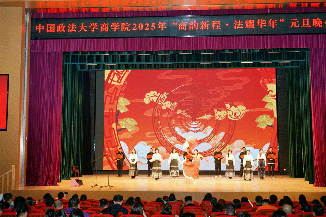 随后,师生们纷纷登上舞台,用才情与热情点燃了整个夜晚。院领导、老师们与员工代表共同合唱《灯火里的中国》,悠扬的歌声如潺潺溪流,诉说着对祖国的深情眷恋与美好祝福。2024级国际商务专硕的同学们用激昂的歌声演绎《不忘初心》,展现了法大学子对理想信念的执着坚守;活力四射的《Batter up》则彰显了员工们的青春朝气与蓬勃力量。张国栋同学与许恒老师的《法大人在北京》,如同一曲悠扬的京韵华章,唱出了法大人在京城的奋斗故事与深厚情怀。此外,朗诵节目声情并茂,昆曲《牡丹亭·寻梦》如梦似幻,仿佛带领观众穿越时空,领略传统文化的魅力;小品幽默诙谐,引得笑声与掌声此起彼伏;歌舞串烧活力四溢,展示了师生们的多才多艺与青春风采。晚会还精心设置了抽奖环节,丰厚的奖品如璀璨星辰,点燃了观众们的热情,将现场气氛推向一波又一波的高潮。