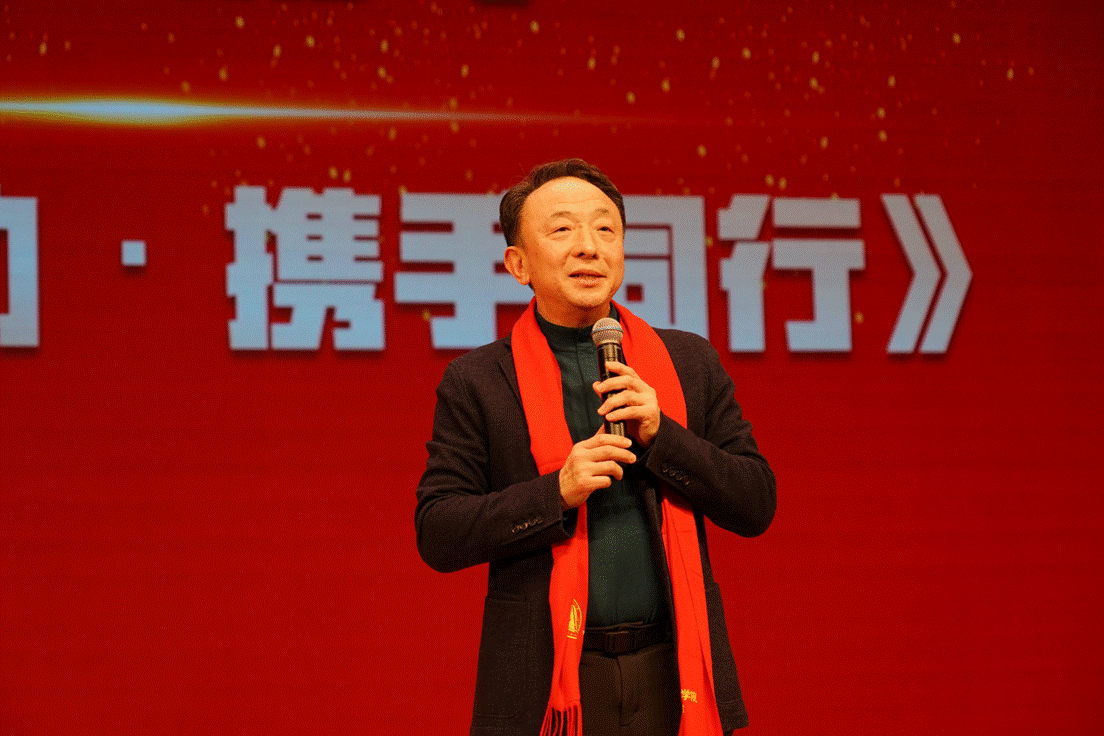 随着夜幕渐深,“青春跃动·携手同行”篇章将晚会推向了高潮。MBA副主任兼办公室主任巴图老师上台致辞。巴图老师谦逊地表示,自己作为 MBA 中心的一名 “新兵”,深感责任在肩,同时也满怀动力。在未来的征程中,他将全心全意为同学们服务,助力大家成长成才。MBA 绝非仅仅是一个学习的集体,更是一个汇聚温暖与力量的大家庭,每一位成员都紧密相连。他衷心期望,能与大家携手并肩,凭借各自的智慧与汗水,为这个大家庭添砖加瓦,镌刻属于自己的独特印记。巴图老师还向公司全体师生送上了真挚祝福。他祝愿大家在新的一年里,言语间尽是蓬勃朝气,精神面貌焕然一新,以昂扬之姿开启全新奋斗篇章。希望公司全体师生能够心手相牵,砥砺奋进,向着美好未来大步迈进,共同书写绚丽华章。
