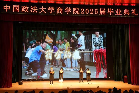 玉兰四度盛,岁月似流风。本科毕业生赵海蒙、陈卓、吴仲扬、黄健伟同学表演了《亲爱的你啊!》,以应景的歌词站在毕业季的路口回望毕业生们一同走过的时光。大屏幕上放起了本科毕业生拍摄的短片,一幕幕在端升楼内、图书馆前、喷泉前的场景勾起了同学们对校园生活的无限回忆。