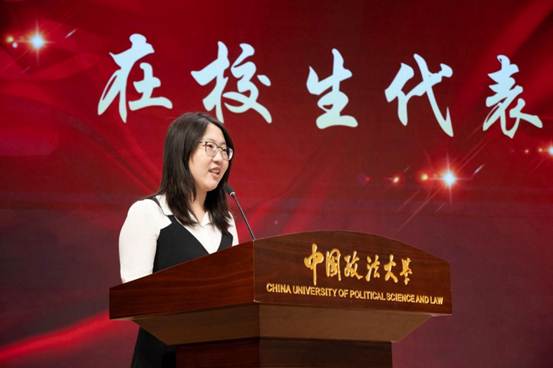 随后,在校生2023级硕士研究生刘昕宇同学发言。她真诚地感谢师兄师姐的悉心帮助,也祝福所有毕业生在风云际会处开新局、在星辰大海间谱华章。