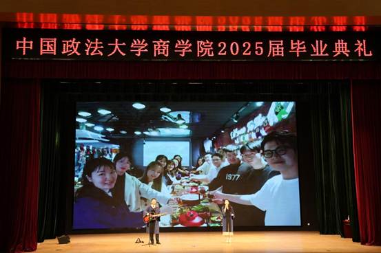 接着,2022级学硕班的张国栋和张媛柯深情演唱《你曾是少年》。吉他弦音与悠扬女声仿佛又将老师同学们带回到毕业之前的时光。一张张合影划过,记录着毕业生过往的每一步脚印。