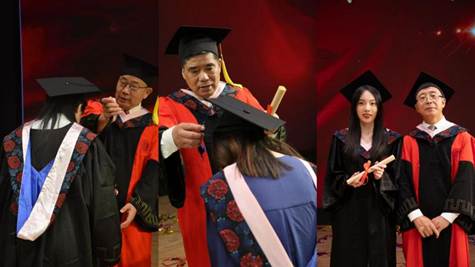 接下来是万众瞩目的学位授予仪式,在场的毕业生依次上台接受象征着正式毕业的拨穗礼,开启人生新旅途,奔赴下一站山海。