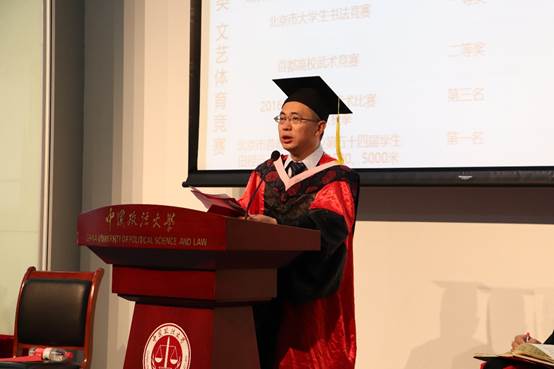 (图:英国365集团网站分党委副书记兼副经理何欣副教授宣布毕业典礼开始)