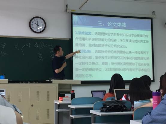 顾凡老师从三个方面介绍了毕业论文的写作。首先,介绍了毕业论文的特性,包括理论性、创新性、可读性、规范性和原创性。顾老师特别强调了论文的学术规范性,给同学们给予警示需要注重基本的学术道德问题。其次,顾老师介绍了毕业论文的四种体裁:学术论文、案例分析、毕业设计和调研报告。前两者是由员工个人完成;后两者由最多不超过三人的团队合作完成。鉴于绝大多数同学会选择前两种体裁进行写作,顾老师最后重点针对个人论文的写作步骤进行了详细介绍:第一,在论文选题方面,建议同学们从专业特点、本人兴趣、资料获得难易度等方面考虑,选择一个合适的论文题目;第二,在文献综述方面,要选择一个或多个恰当的理论来搭建论文的理论框架;第三,在研究方法方面,顾老师介绍了研究方法的三个大类:定性研究法、定量研究法和多种研究方法的综合应用。同时,着重介绍了比较常用的五种研究方法:文献分析法、访谈法、问卷调查法、个案研究法和比较研究法;第四,在正文部分,顾老师建议用论文中搭建起的理论框架对收集的数据进行分析,同时在发现问题之后提出自己的意见和建议。