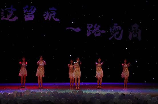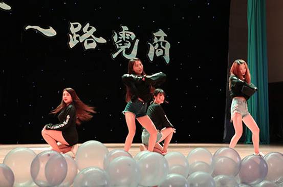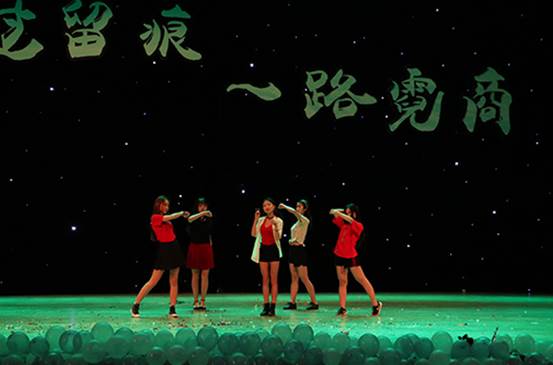 在此之后,国际商务一班带来舞蹈节目《毕业季party》。在《Party Time》的音乐中,五位师姐在绚丽的灯光下尽情舞动,带来了一段动感的舞蹈。短暂的停顿过后,她们又伴随着一段节奏感极强的音乐跳起了又一段精彩的舞蹈。梦幻的舞台,动感的音符,她们面带迷人的微笑,踏着热情的舞步释放着活力与青春的气息。全场观众不自觉地融入到舞蹈的欢乐气氛中,纷纷上台献花,现场气氛被推向一个高潮。