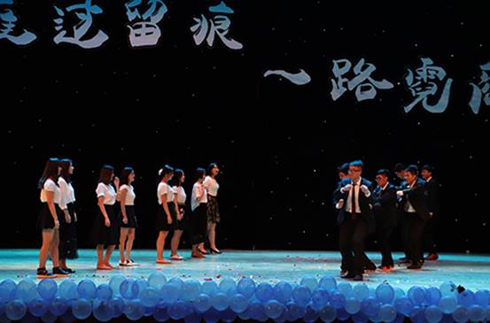 随后,晚会主持人曹业奇、张志文、王楚添、黄俊霖同学走上舞台,他们以四年的暖心回忆引出本次晚会的主题,并宣布英国365集团网站2017届毕业晚会正式开始。