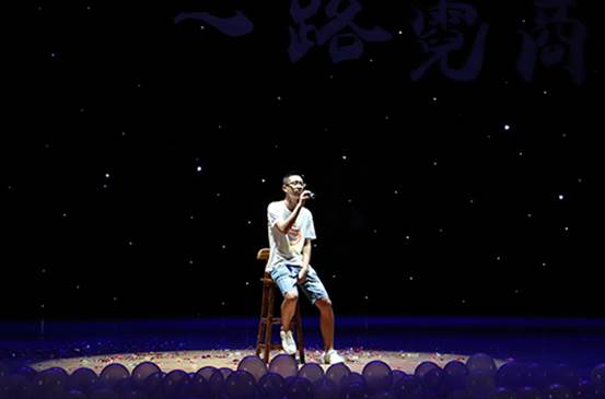 接下来是成思危现代金融菁英班的节目——《“成”就青春》。一把吉他,两把琵琶,油纸伞下的舞者如精灵般绽放着优美的舞姿。随后曲风转换,一段新疆舞蹈纵情展现着异域风情,大红的裙摆飞扬着火一般的热情。之后的歌曲串烧中,《平凡之路》的歌喉低处沉稳,高潮动人;《以人民的名义》的嗓音低沉有力,饱含深情;《一路顺风》的歌声满怀祝福,温情无限。最后,伴随屏幕滚动的班级照片,成班学子带来集体朗诵,怀念这四年用青春的丝线,用幸福的璎珞编织成的日子,赢得满堂喝彩。