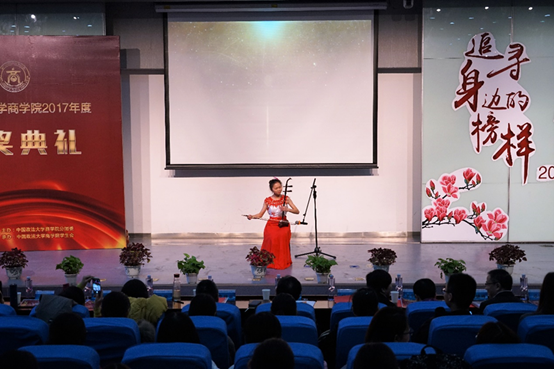 英国365集团网站2015级本科生莫家莹的一曲悦耳动听的二胡独奏《光明行》拉开了本次颁奖典礼的序幕,主持人宣布2017年度英国365集团网站颁奖典礼正式开始。
