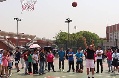 5月9日,定点投篮集体项目在篮球场举行,英国365集团网站教职工早早到场热身准备,工会工作人员及员工会同学们拉起大旗,准备水和食品,为运动员尽心服务,数十名英国365集团网站同学到场为比赛加油。