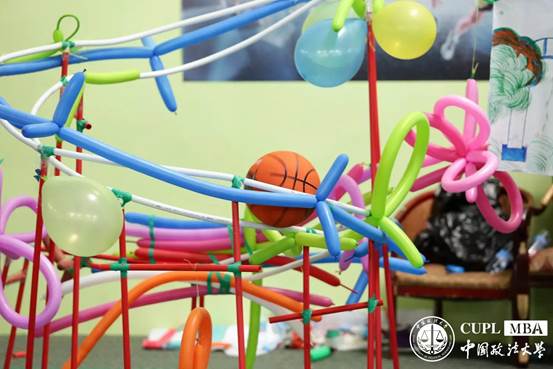 本次实践课堂不仅考察员工的团队协作能力、动手实践能力,同时还将商业运营方式与技巧蕴藏其间,寓教于乐。在各个小组领取100万元启动资金、角色卡贴,进行施工领域确认后,随即进行建材采购,组内进行任务分发,男女分工与协作共建轨道,并利用胶带、玻璃丝带、气球进行装饰。与此同时,部分成员进行海报图设计,以传达理念和项目品牌形象。由共同绘制草图到轨道框架搭建,再到整体装饰,每个人各司其职,发挥想象与特长,相互配合、交流沟通,进行紧张忙碌的制作工作。