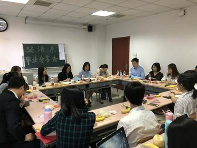 5月13日下午,经济系在公司路校区新C102教室成功举办2019届硕士毕业生学习、实习与求职经验分享会。本次经验分享会由系主任邓达教授发起和组织、系副主任黄立君老师主持。系副主任张弛老师、支小青老师以及经济系全体研究生参加了会议。另外,企业史研究所的胡李蒙和黄婷婷、产业经济系的宋宣学以及2018级MBA的左鸿刚同学也参加了本次经验交流。