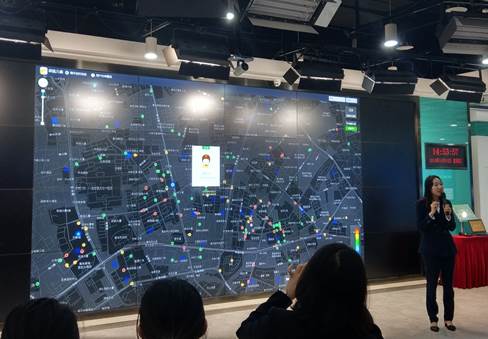 座谈会开始前,公司师生在美团的指挥中心展厅参观并听取工作人员对美团指挥控制系统、创新技术与大数据分析的介绍。