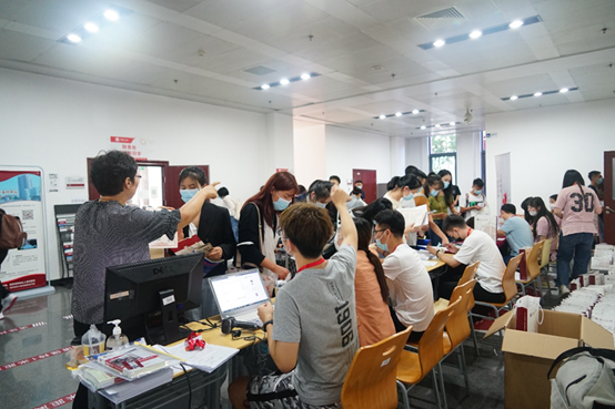 此次公司共有279位研究生新生入学注册报到,其中MBA197人,学术研究生40人,专硕29人,博士13人。为了保证研究生新生报到现场井然有序,公司负责新生报到的工作人员根据现场情况提前挂好欢迎横幅,张贴好引导标语,摆放好桌椅,整理好需要发放的各项报到材料,用积极充分的准备热烈迎接2020级研究生新生。