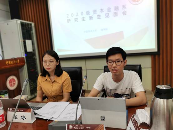 此次会议由资本金融系主任程碧波主持,参与会议的有刘纪鹏经理、胡继晔教授、李泳教授、朱晓武教授、田文昭副教授、李伯尧老师、胡历芳老师、李大夜老师、刘彪老师,系秘书李慧老师,2019级研究生代表张东侯、赵冰、黄紫杉、黄瑾和2020级全体研究生新生。