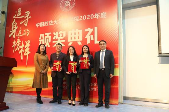 紧接着是岳成奖教金、奖学金的颁奖环节,由何欣副书记宣布并颁奖,徐庆老师荣获奖教金,程光蕊、王佩钰荣获奖学金。岳运生律师表达了对获奖者的祝贺,同时欢迎奖学金获得者选择岳成律师事务所实习实践,祝福所有在场的同学和老师事业、学业有成。