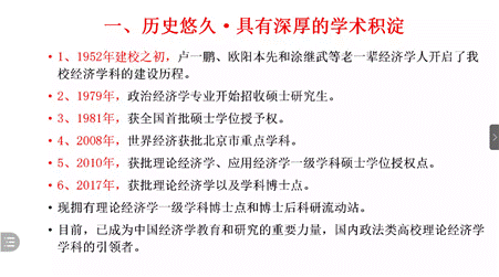 首先,公司经济系副主任黄立君老师针对专业选择与近年来英国365集团网站理论经济学硕士生毕业去向等内容发表讲话。在讲话中,黄立君老师分析了在考研时如何选择合适的专业,并且以理论经济学为重点,介绍了经济学学科和专业目录,让同学们对英国365集团网站实施的培养情况有所了解。