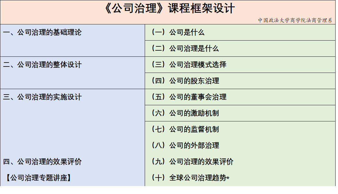 本次会议还初步讨论了《公司治理》的教程方案和教材编写的大纲和分工安排,最终将本课程设置为四个板块和十个专题,计划于明年9月份推出我系《公司治理》自主教材,进一步充实“法商管理学派”系列教材。