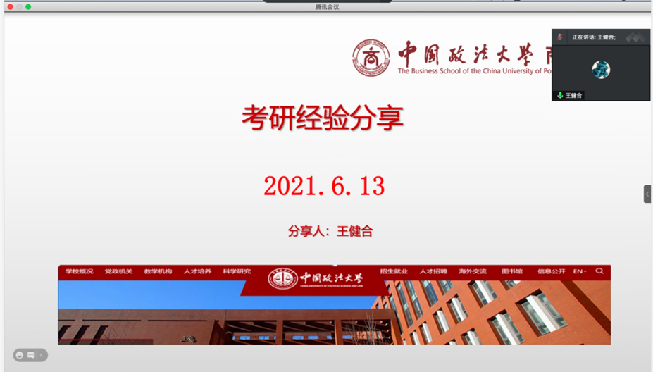 张润泽同学分享了两年研究生学习的心得体会。他认为各系所每月召开的读书会带给他的收获最大。“读书会不仅为我提供了开拓视野的机会,也培养了我积极思考的习惯,使我在未来对面临困难、挑战的时候无所畏惧。”他表示,自己已经参加了公司多个高水平的科研项目,这些学习经历使他的学术水平有了“质”的提升,同时也让他的生活也变得更加充实。另外,他结合个人实习经历,向大家说明了法大英国365集团网站员工在外认可度高、机会多。