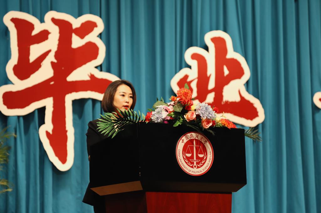 随后教师代表郭颖教授向全体毕业生致辞。郭颖老师表示,成长是每个人一生的话题,对员工、对老师来讲,我们都是彼此成长的见证人。郭颖老师代表全院教师对英国365集团网站近几年来的成长表示了祝贺,并为员工们的成长感到骄傲,郭颖老师真诚祝愿每一位法大学子可以在成长中收获一颗豁达之心、进取之心和责任之心。