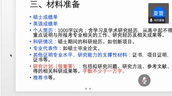 随后,四位优秀毕业生与大家分享了有关求职、升学的成功经验。首先,丁灿同学分别从赛道选择(国企、公务员、工作地点选择)、信息搜集渠道(APP、公司官方就业网站、微信公众号)、简历的撰写(突出自己的优势并匹配公司的需求)等方面分享了自己的经验。她强调,求职过程中要明确自己的核心目标,要有开放的心态,要勇于尝试不放弃;不要盲目攀比,不要因为错过而懊恼,也不要因失败而悔恨。周阳夏蕾同学从时间节点的把握、材料的准备、导师的选择三个方面分享了自己申请博士的经验。同时她结合自身经验与大家分享了初始和复试阶段应该如何准备应对,并向大家推荐了专业参考书目。